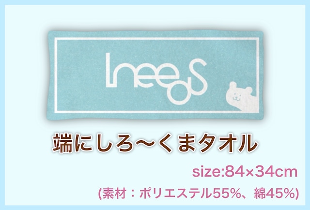 IneedS、初のオリジナルタオル! 定番のライブグッズ!ぜひGETしてください☆ size:84×34cm 素材:ポリエステル55%、綿45% しろくまイラスト:柳川陽香